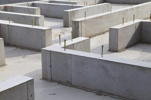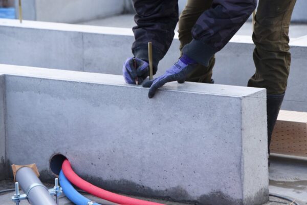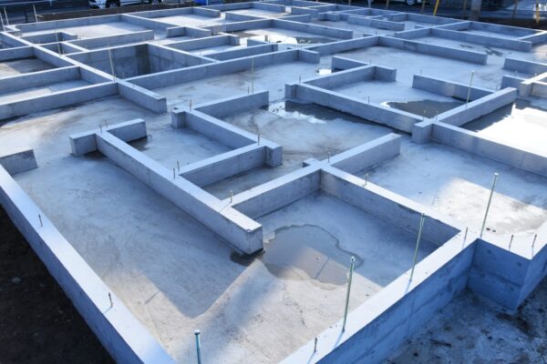 まずは床部分にコンクリートを流し込んで固めた後、立ち上がり部分に型枠を組んで、コンクリートを流し込みます。